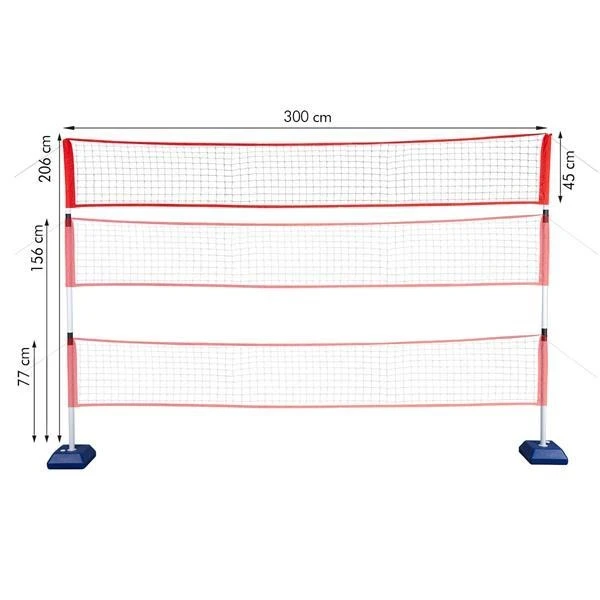 - wenn Sie die Höhe des Netzes auf dem mittleren Niveau (156 cm) einstellen, bekommen Sie ein Netz zum Badminton.