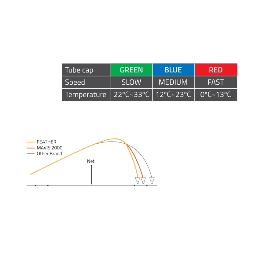 - der Mix aus hervorragenden Rotationseigenschaften und die extrem lange Haltbarkeit der MAVIS Nylon-Federbälle machen selbst lange Ballwechsel zu einem wahren Vergnügen